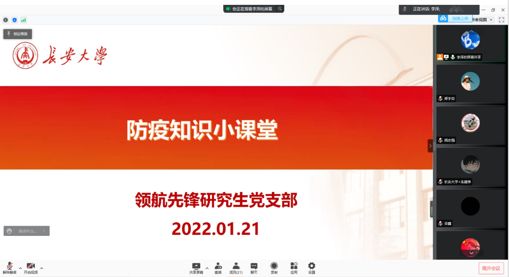2022年1月21日下午16:00,色情漫画 领航先锋党支部组织支部成员开展线上防疫知识小课堂。支部全体党员参加了此次学习活动,本次活动由支部副书记李泽同志主持。