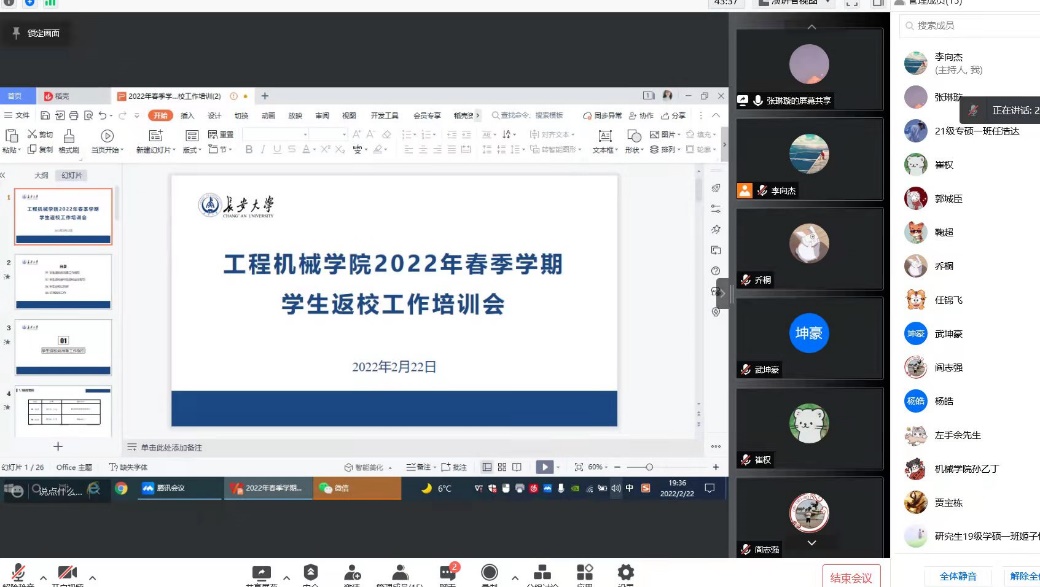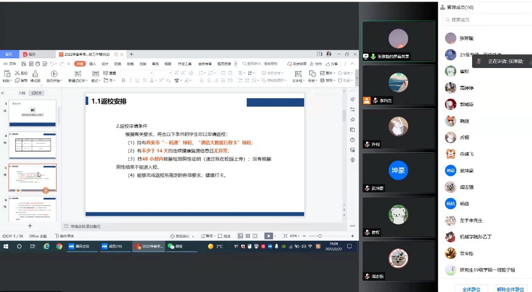 2022年2月22日晚19:00,色情漫画 研究生线上召开2022年春季学期学生返校工作培训会,参加此次会议的有研究生辅导员高婷婷、张琳璇以及研究生全体班长。