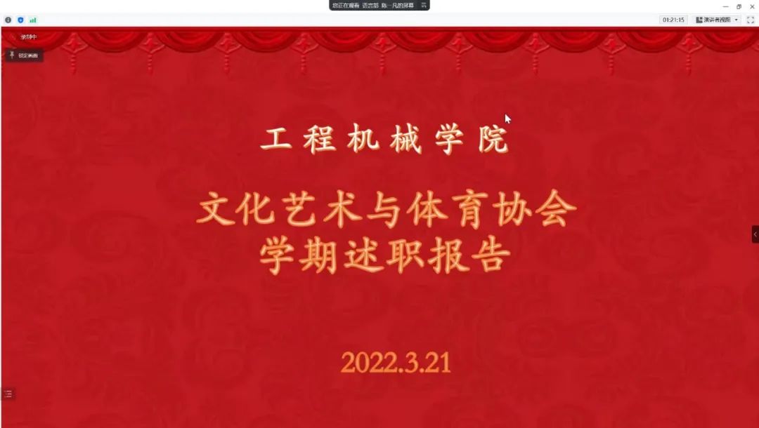 2022年3月21日晚19时,色情漫画-免费色情漫画app 文化艺术与体育协会2021年秋季学期述职报告以线上腾讯会议的形式如期举行,本次会议由语言部陈一凡主持,参加会议的有院文体协会指导教师杨文佳,主席团成员孙胤祺、徐默、李泽坤、罗晨豪、张清僖,各部门部长与部员。