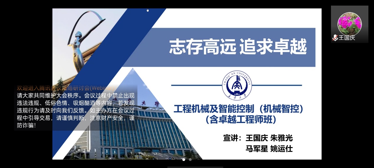 本次讲座从“机械工程简介”“专业方向”“培养方案”“未来发展”四个方面对工程机械及智能控制和卓越工程师班进行了全面解读,讲座开始之前,杨文佳老师从教授简介和科研成果等方面介绍了各位主讲老师。