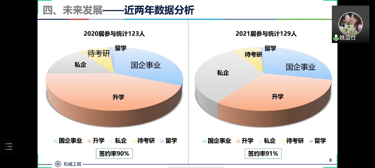 最后,姚运仕教授介绍了未来发展情况,学习该专业可通过考研出国、创业等方式实现未来发展,提升综合实力,并介绍了本专业方向毕业的部分优秀校友事迹。