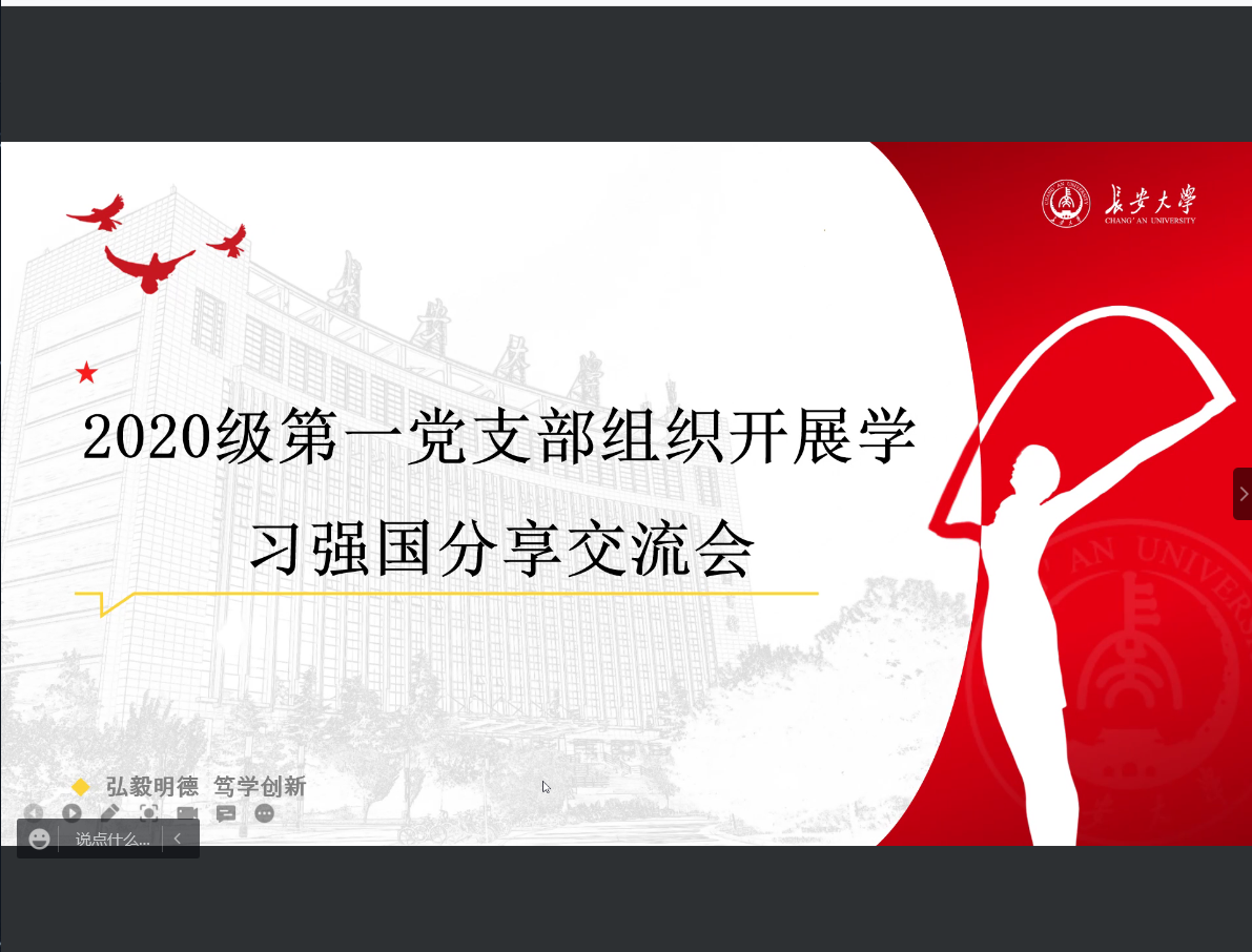 2022年4月23日,色情漫画 硕士生2020级第一党支部组织支部党员开展“学习强国”分享交流会。本次会议由宣传委员杜雨洁主持,由董建涛和安浪飞分别为大家分享学习成果。