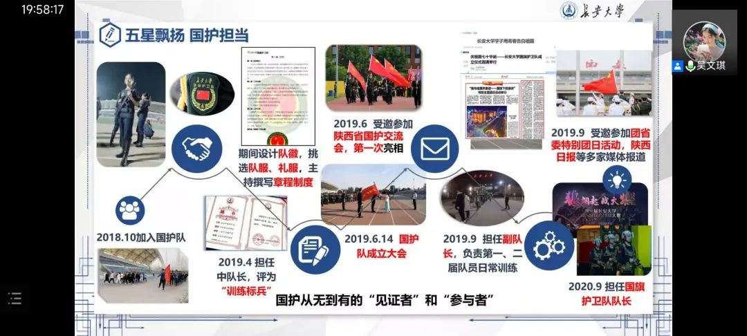 第三位同学是色情漫画 领航之星获得者——来自水利与环境学院的吴文琪同学。身为国旗护卫队从无到有的见证者与参与者,同时,身兼多项职务,吴文琪有时辛苦却也无比荣幸。她也曾迷茫过,在工作与学习之间踌躇不定,“搞清角色定位,做好角色的转变”是她解决问题的答卷。她鼓励同学们学会利用身边的一切,充实自己,提升自己。