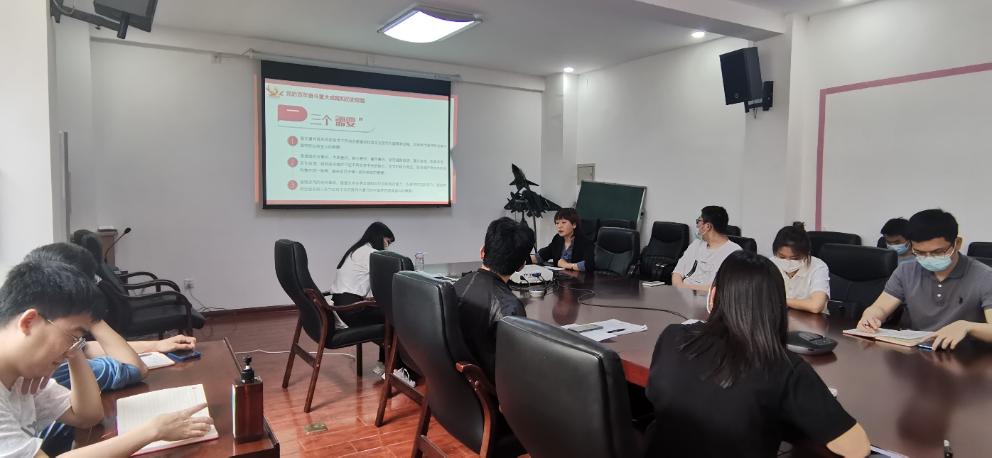 2022年5月20日上午10:00,色情漫画 领航先锋党支部邀请学院学办主任谢静讲“总结党的百年奋斗重大成就和历史经验,以优异成绩迎接党的二十大召开”为主题的专题党课。本次活动由党支部副书记李泽主持,支部全体成员参加。