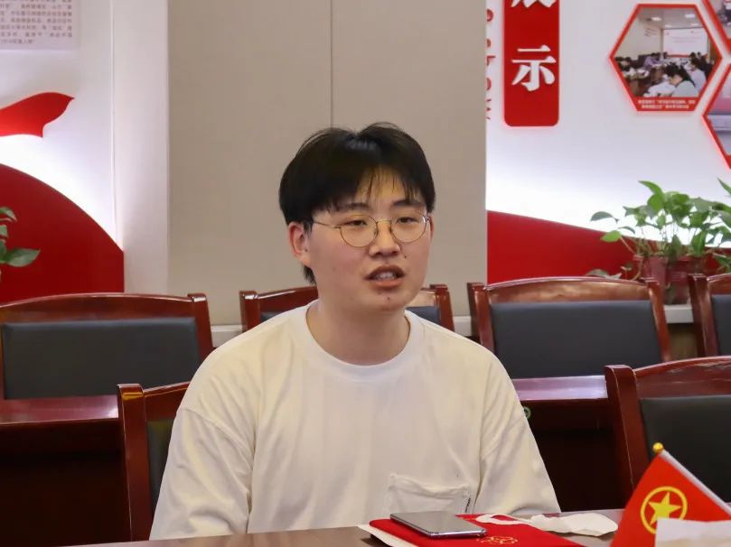 本次慰问会以“青春风采,善举大爱”为主题,对甄敬鹏同学捐献造血干细胞,敢于担当、甘于奉献的善举进行表彰。会中,丁芝娟老师代表学校团委对甄敬鹏同学的奉献精神表示了充分肯定与赞扬,她表示“生命之光”计划作为学校的重要品牌活动,希望更多学子加入其中,传递爱心。同时丁老师叮嘱甄敬鹏要注意身体恢复,在今后的学习生活中继续发扬“奉献、友爱、互助、进步”的志愿精神。雷剑老师代表学院党委对甄敬鹏同学捐献造血干细胞的大爱善举行为点赞,表示学院将进一步宣传其先进事迹,树立青年榜样,号召更多学子加入到志愿奉献中,同时也祝福甄敬鹏同学健康快乐、成长成才,实现人生理想。甄敬鹏同学分享了自己捐献造血干细胞的过程及心得体会,他表示能够通过自己的行动帮助到有需要的人,让他收获了成长与感动,并会在今后的生活中继续向上向善,保持初心。