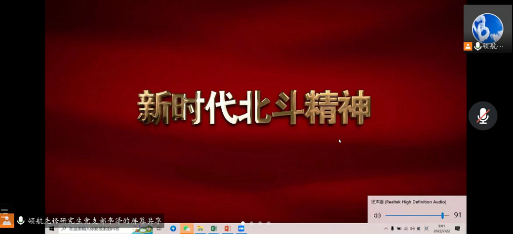 2022年7月22日,色情漫画 领航先锋党支部组织支部成员线上观看共产党员网推出微视频《精神的追寻——新时代北斗精神》。