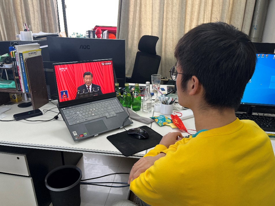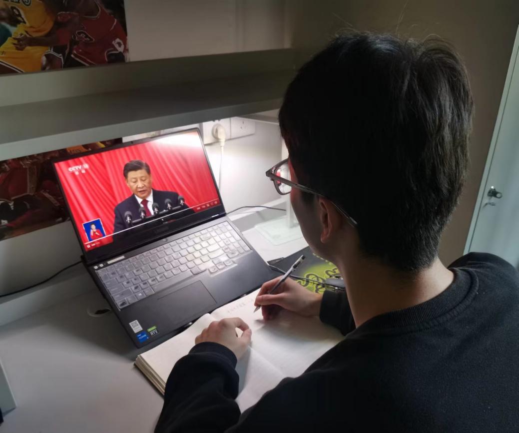 2022级专硕一班团支部——李志彪: 这次报告中,习近平总书记从民生、国防、教育、科技等方面进行了全面总结与展望,我们要走的路仍然很长,后面仍需继续努力,新时代的伟大成就是党和人民一道拼出来、干出来、奋斗出来的!党用伟大奋斗创造了百年伟业,也一定能用新的伟大奋斗创造新的伟业。