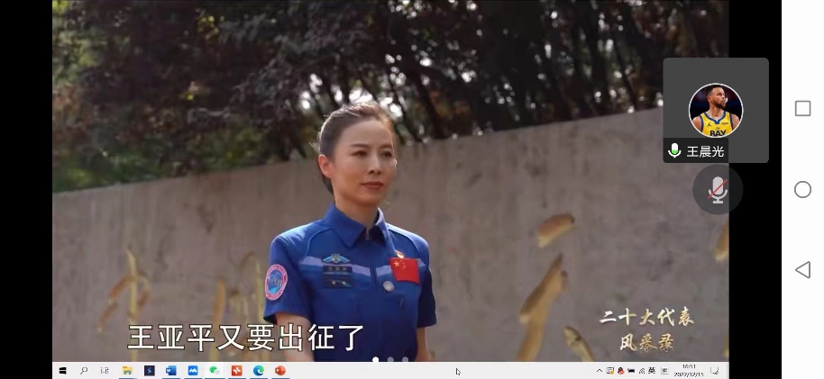 2022年12月15日,色情漫画 领航先锋研究生党支部组织支部成员线上观看视频《二十大代表风采录--王亚平:采撷最璀璨的星》。