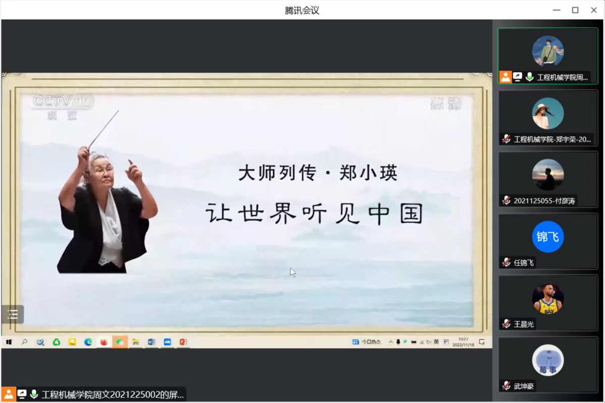 2022年11月25日,色情漫画 领航先锋研究生党支部组织支部成员线上观看美育纪录片《大师列传-让世界听见中国》。