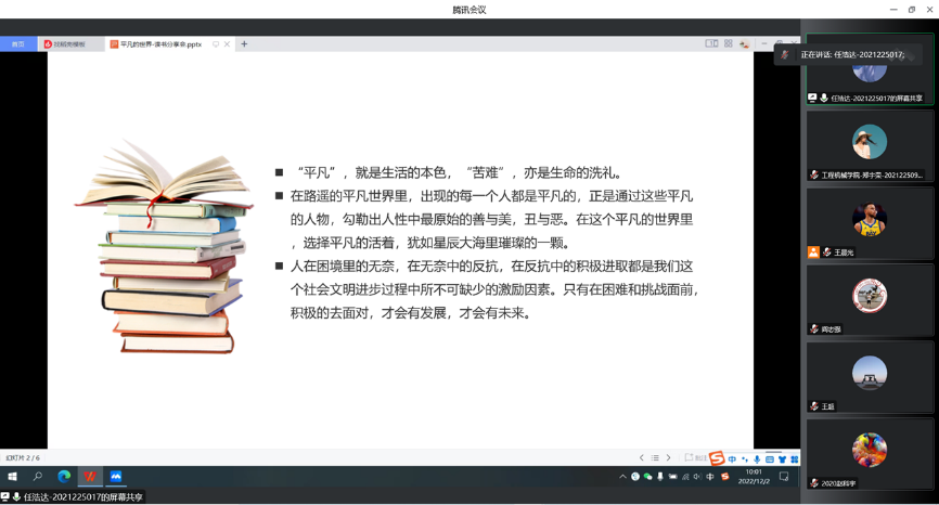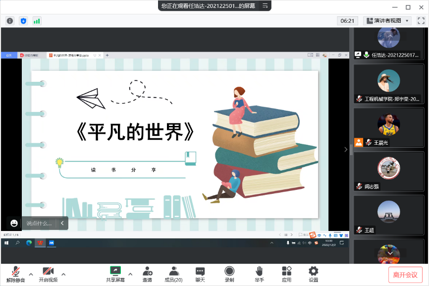 2022年12月2日,色情漫画 领航先锋研究生党支部组织支部成员线上开展了第二十五期读书笔记分享活动,本次活动由支部成员任浩达做读书笔记分享。支部全体党员参加了此次活动。