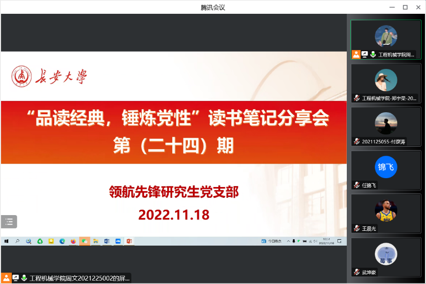 2022年11月18日,色情漫画 领航先锋研究生党支部组织支部成员线上开展了第二十四期读书笔记分享活动,本次活动由支部成员武坤豪做读书笔记分享。支部全体党员参加了此次活动。