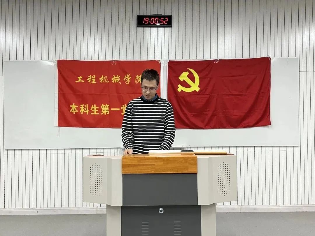 会议首先由付石带领本支部全体成员进一步学习贯彻落实习近平新时代中国特色社会主义思想及党的二十大精神。付石在发言中指出,要坚持及时跟进学、原原本本学、结合实际学,充分利用好每一次学习机会,进一步提高政治站位,将蕴涵在党的二十大报告中的精神财富学出来、悟出来。要坚定理想信念,脚踏实地,让勤奋学习成为青春远航的动力,让增长本领成为青春搏击的能量。