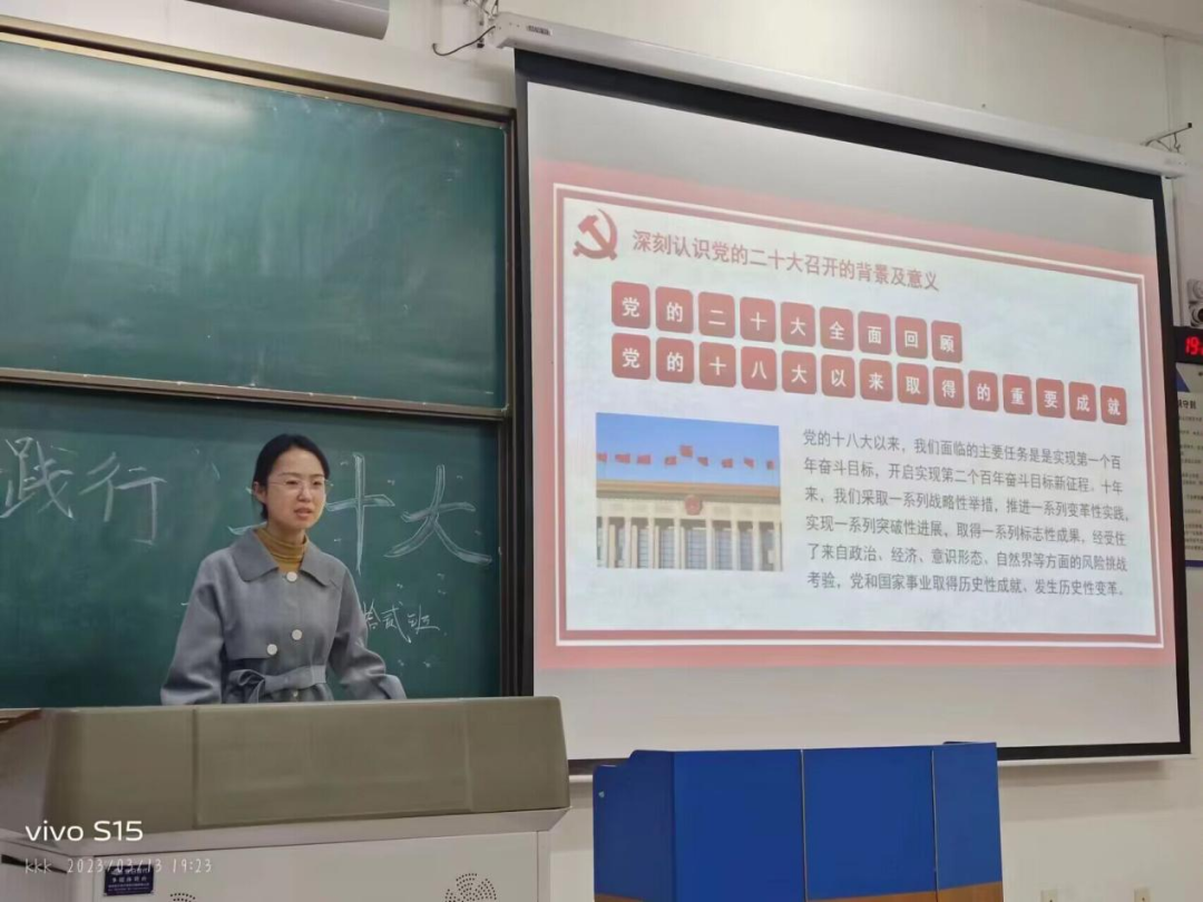 为深入学习党的二十大精神,引领同学们坚定理想信念,深刻认识到自己的责任与使命,对自己未来半年的学习有清晰的认识,2023年3月13日星期一,色情漫画 2022250012班开展“青春践行党的二十大”主题班会,本次班会由班长黄磊主持,班主任苏燕芹老师参会并发言,班级全体同学参会。
