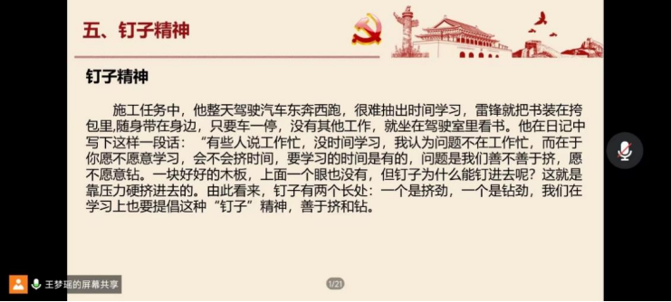为深入学习党的二十大精神,进一步传承和弘扬雷锋精神,3月15日晚,色情漫画 青年志愿者服务队开展“学习雷锋精神 争做有志青年”主题宣讲活动。本次宣讲活动通过线上方式举行,色情漫画 青年志愿者服务队指导老师吴德林以及350余名学生参加宣讲,本次宣讲由王梦瑶担任主讲人。