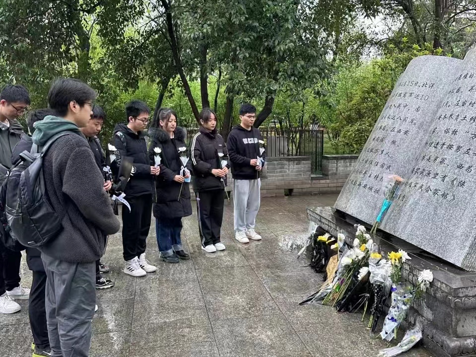 西安交通大学生命学院健康与康复科学研究所师生联合党支部党员韦思宏:“如《清明》诗一般,今年清明节西安也下起了淅淅沥沥的小雨。我们冒雨前往革命公园缅怀先烈,这里为纪念五万多位死难的军民而建,是英勇先烈抛头颅洒热血换来了我们和平的时代。临走时我想:我们珍惜现代美好生活的同时,还要脚踏实地搞科研,为国家也贡献自己的一份力量。”