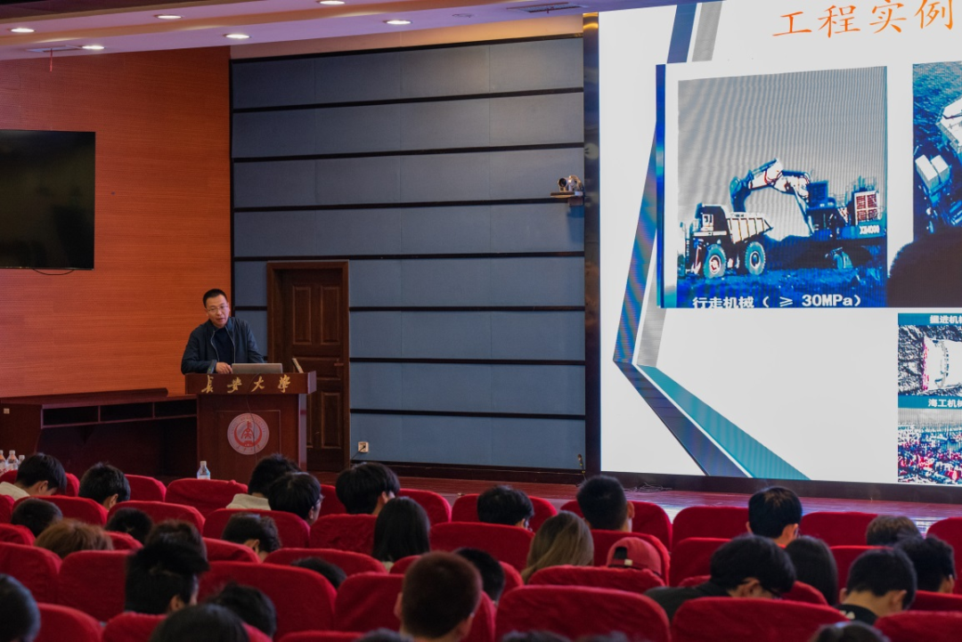 曹学鹏以“机电融合,智启未来”为题,从什么是机械电子工程、专业培养目标、机械电子工程专业介绍三个方面进行讲述。曹老师指出,机械电子工程专业作为国家级特色专业,是工程机械领域发展最快、最活跃的专业之一,它以培养高素质工程技术人才为目标,旨在把学生培养成为“基础实、口径宽、能力强、素质高”的富有创新精神和实践能力综合性高素质人才。最后,曹老师从就业前景与学生深造率等数据进行分析,介绍了机械电子工程专业毕业生去向与升学情况,进一步增强了学生的专业学习信心。