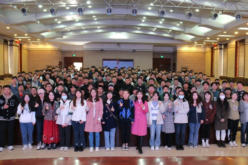 高婷婷以“培养批判性思维,实现高质量就业”为题,从当前就业形势、如何实现高质量就业及就业协议书签订三个方面展开。首先,高婷婷讲述了当下就业形势,对学院近6年毕业生就业状况及去向行业进行分析,梳理了学校就业时间安排,指出同学们要从现在开始搜集信息,提前做好职业规划,抓住春秋两季就业黄金期。随后,她从行业选择、用人单位选才标准和就业技巧三个方面讲解了怎样实现高质量就业,并列举身边同学求职经历,建议同学们要充分利用各种平台和资源,掌握信息,做好信息整合,拓宽就业渠道,扩大就业空间。最后,她以图文结合的形式对就业协议书签订的注意事项、签违约流程以及就业系统填报等进行了详细说明。会后,全体师生合影留念。