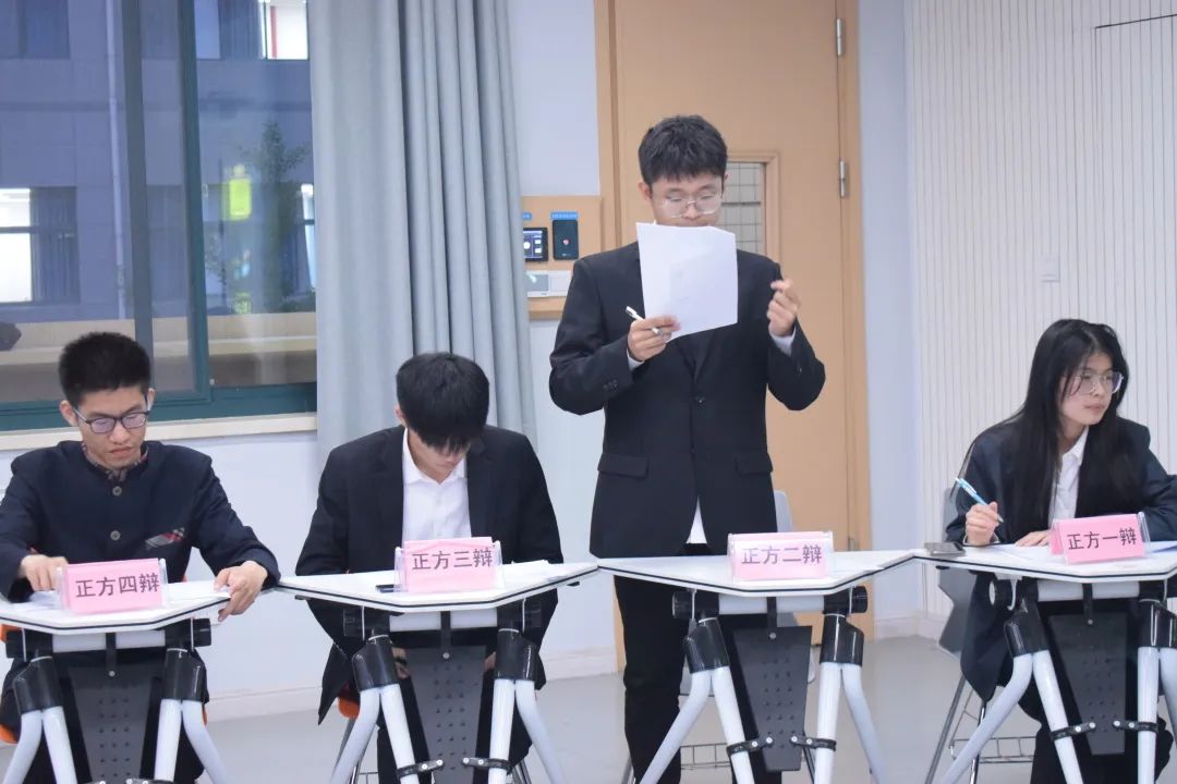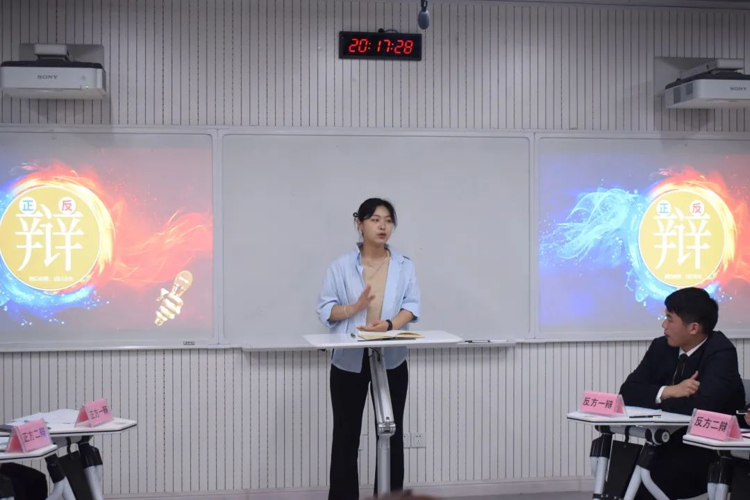 比赛开始,主持人陈宇帆致比赛开幕词,并向正反两队阐述比赛各阶段规则。比赛分为立论陈词、攻辩阶段、攻辩小结、自由辩和总结陈词五个环节,在比赛过程中,双方辩手均发挥出高水平的辩论能力,正方一辩的先声夺人、正方四辩的从容不迫、反方二辩的理性思考、反方三辩的绝地反击,为本次辩论赛留下一幕幕精彩的画面,充分展示了我校大学生的雄辩才能。