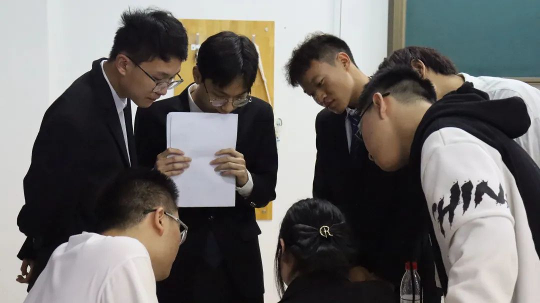 比赛开始前,参赛的同学们按照座位表有序入座。等待全场安静后,监考员开始发放试卷。同学们认真阅读每一道题目并仔细作答。考试结束后,同学们有条不紊地将试卷交到讲台上,监考员也经过确认收集好试卷。之后判卷员进行试卷评分工作,最终刘义坤、苏昱熙等16名同学晋级决赛。