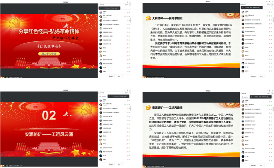 为切实推动学习型党组织建设,提升党员的党性修养和个人素质,支部开展读书分享会旨在引导党员以分享读书感悟的方式,深入贯彻党的二十大精神,学习并弘扬党的革命精神。主要分享了《红岩》、《红色故事会》、《苦菜花》、《新儿女英雄传》等红色经典读物。