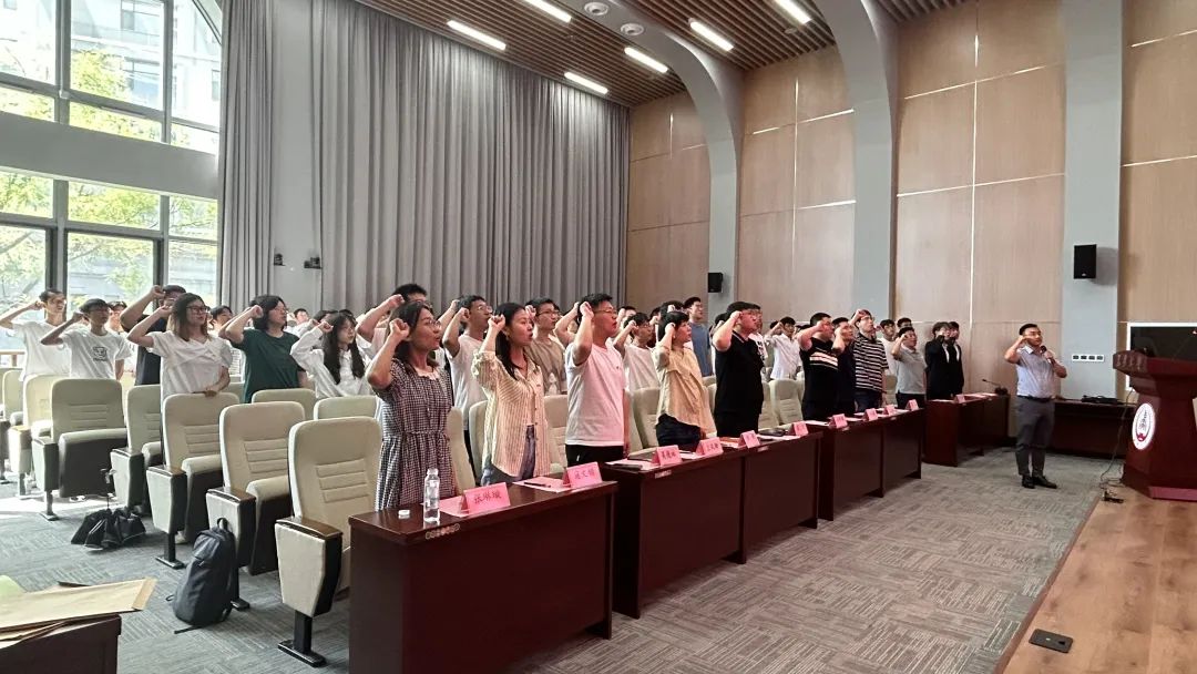 大会首先进行了入党誓词重温仪式,在党旗前,由学院团委书记赵尉尉领誓,全体2023届毕业生党员重温了入党誓词。全体与会同志面向党旗庄严肃立,举起右拳,铿锵有力地重温入党誓词,重忆入党初心,再次接受党性洗礼。一声声庄严宣誓,表达了全体与会同志坚定的政治信念和报效国家的意志决心,彰显了学院学生党员的责任与担当。