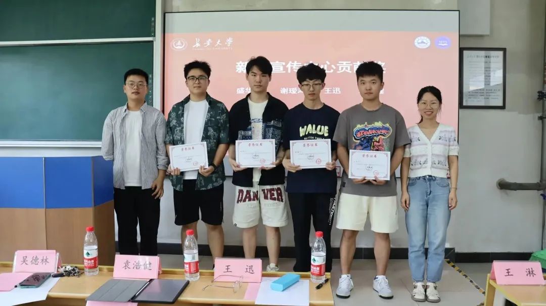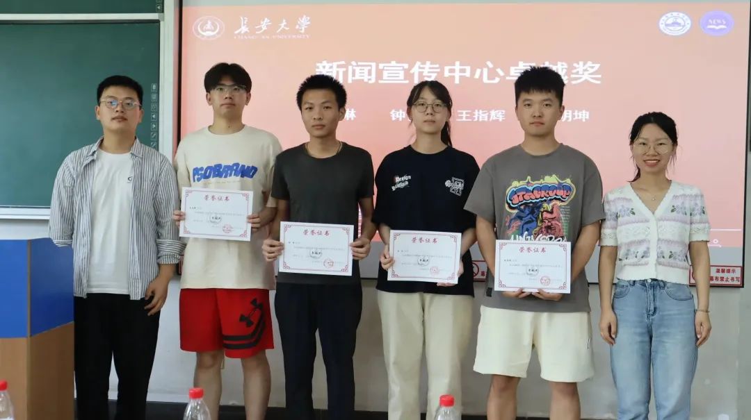 会议第二项,指导老师王风珊、吴德林为优秀个人进行颁奖。根据上一学年的工作表现以及对部门贡献综合评选,分别颁发了贡献奖、卓越奖和新锐突破奖。随后,新闻宣传中心全体工作人员合影留念。