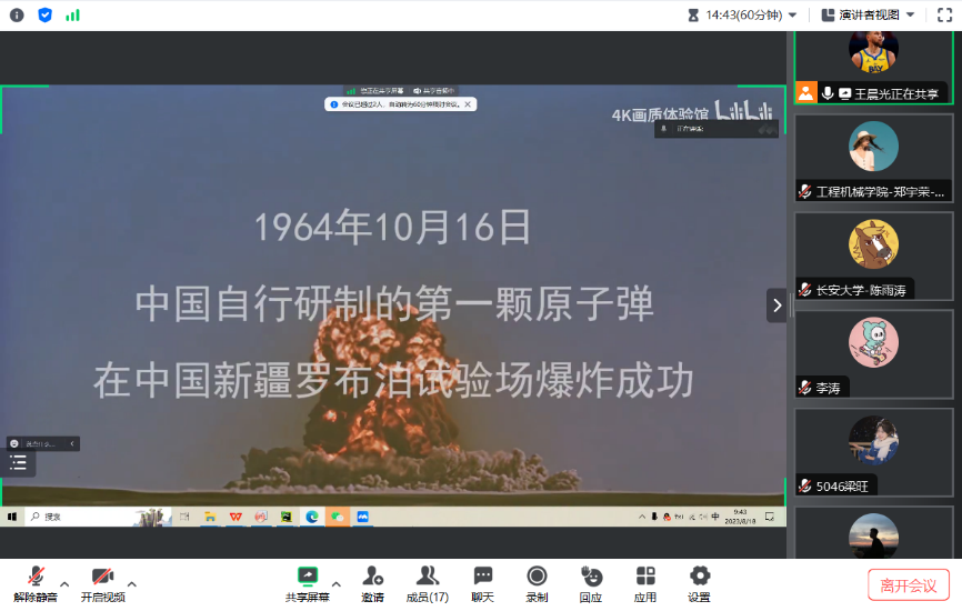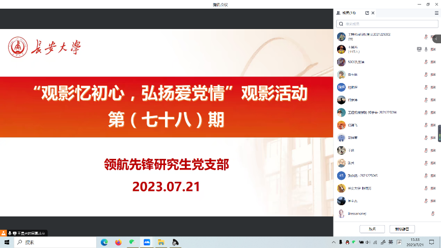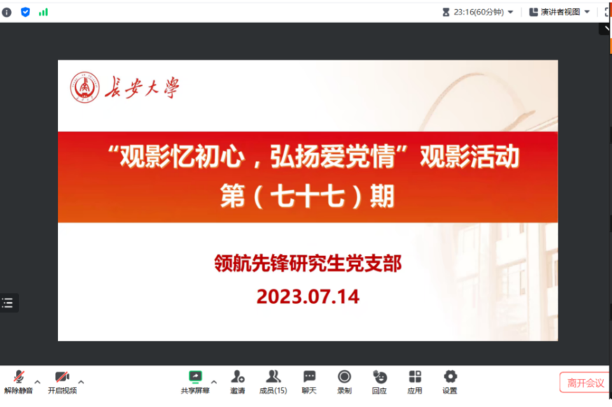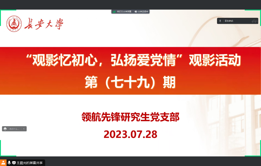 2023年8月11日,色情漫画 领航先锋研究生党支部组织支部成员线上观看了爱国影片《横空出世》。支部党员参加了此次活动,本次活动由支部组织委员王晨光主持。