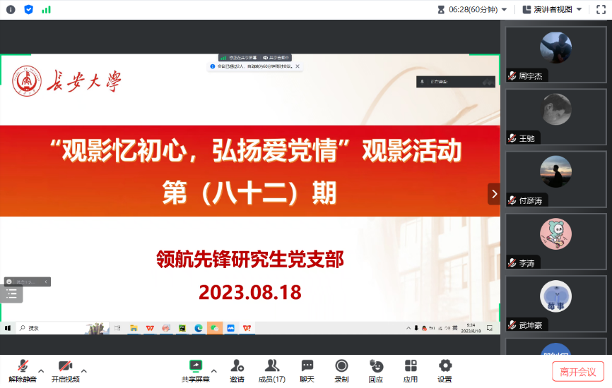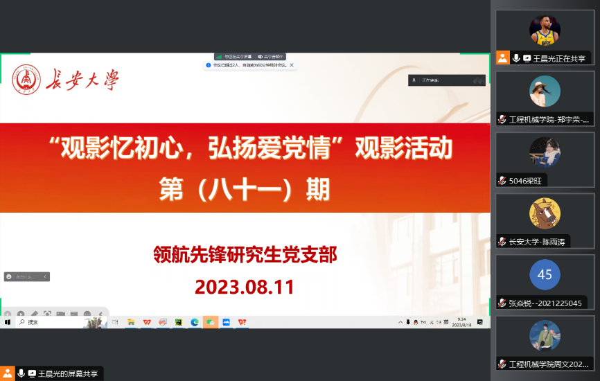 2023年8月18日,色情漫画 领航先锋研究生党支部组织支部成员线上观看了视频《勿忘国耻,警钟长鸣》。支部党员参加了此次活动,本次活动由支部组织委员王晨光主持。