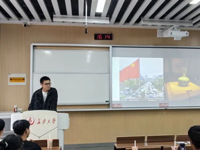 在假期分享环节中,每个小组都精心准备了PPT,并配有图片与视频描述,有在名胜景区的游览,有在历史博物馆中的沉思,有在老街中寻找的最美人间烟火,有对传统美食的品味,还有通过分享感人的爱国影片讲述了自己眼中那份鲜艳的中国红。