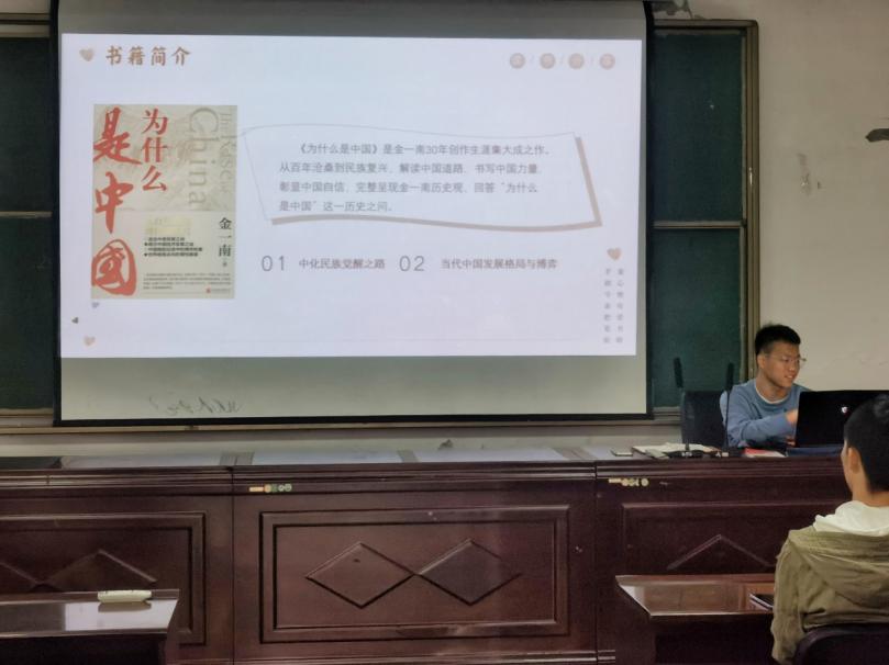 在读书分享环节,王晨光领学了《为什么是中国》一书。《为什么是中国》由中国人民解放军少将金一南撰写,是作者本人30年创作生涯的集大成之作。从百年沧桑到民族复兴,作者在字里行间解读中国道路、书写中国力量、彰显中国自信,回答了“为什么是中国”这一历史之问。在“觉醒之路”中,作者通过“散沙”“变局”“星火”“重生”“醒狮”五个章节,以历史为脉络,分析了近现代初期破碎山河中的世道人心、歧路惶恐间的挣扎徘徊,解读阐释了共产党人的伟大历史自觉和抗战胜利的能量密码;在“发展与博弈”中,作者又通过“利益”“制胜”“大势”三个章节,鸟瞰钩沉中国崛起征途中的较量,理性瞻望改革强军的挑战机遇和世界格局的未来走向。