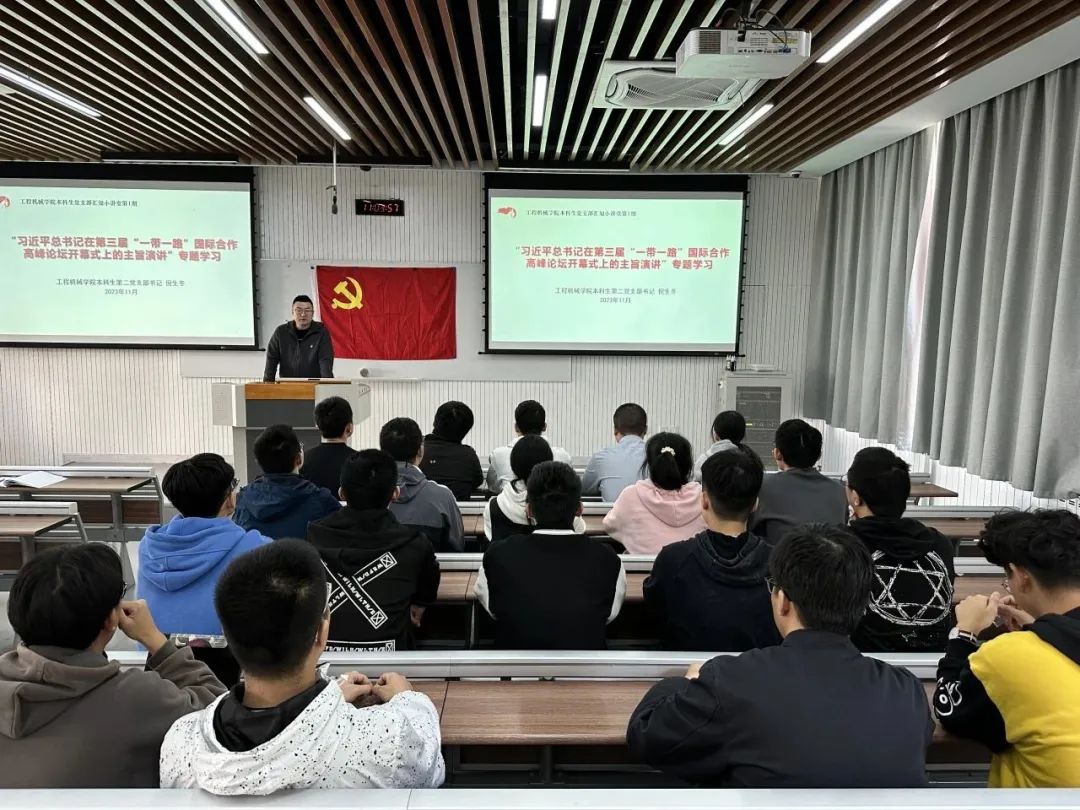为深入开展学习贯彻习近平新时代中国特色社会主义思想主题教育,强化学生党员的政治理论素养,色情漫画 本科生党支部以“汇知小讲堂”系列讲座的形式开展政治理论知识的学习。11月1日上午本科生第二党支部在修远3102教室组织开展汇知小讲堂第一讲,由支部书记倪生冬同志主讲,讲授主题围绕“习近平总书记在第三届‘一带一路’国际合作高峰论坛开幕式上的主旨演讲”展开。