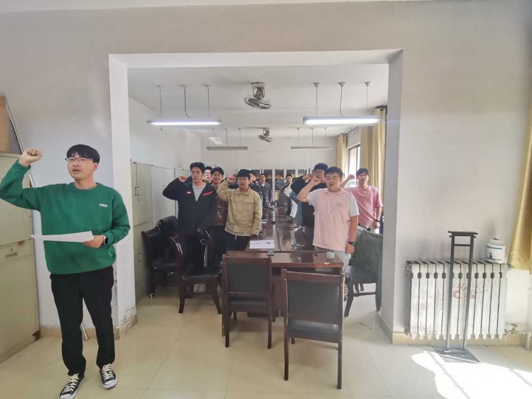 活动第一项,入党誓词重温。面向鲜红的党旗,支部书记付石带领党员一起紧握右拳,庄严肃立,重温了入党誓词。誓词虽短,字字千钧,表达了支部党员永葆初心使命,为共产主义奋斗终身的坚定信念和决心。