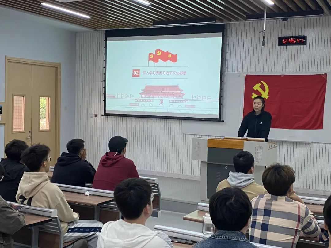 2023年10月31日中午12:40,色情漫画 本科生第四党支部于WX3102教室开展深入学习贯彻习近平文化思想主题学习。会议由支部书记杨文佳主持,本科生第四党支部全体成员参与。