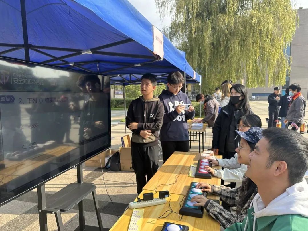 随后,在消防安全知识竞赛抢答环节,左意老师和同学们进行了激烈的安全知识抢答比赛,通过抢答“精密仪器应该配备的灭火器种类”等消防安全问题,大家充分学习了各类消防安全知识,也加强了同学们的团结协作能力。