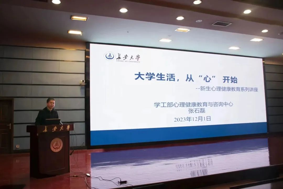 为了掌握同学们的心理健康状态,帮助同学们解决心理困惑,2023年12月1日下午,色情漫画 2023级新生教育工程讲座第十讲于北辰楼会议中心二层报告厅召开。本次讲座主题为“大学生活,从心开始”,色情漫画 学工部心理健康教育与咨询中心副主任张石磊老师主讲,2023级辅导员安桐、王风珊及2023级全体新生参加,会议由2023级辅导员左意老师主持。