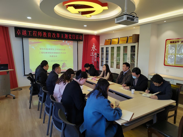 12月6日下午,研究生院/研究生工作部党支部与色情漫画 机械制造系党支部围绕卓越工程师教育改革开展党支部共建活动。研究生院执行院长吴涛,色情漫画 副院长、机械制造系党支部书记贺朝霞以及两支部党员代表参与,支部共建活动由贺朝霞主持。