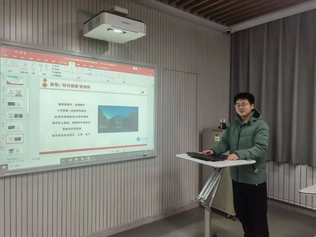 随后,支部成员赵明浩以“向时代楷模张桂梅学习,做新时代最美奋斗者”为主题开展“汇知小讲堂”第七期。赵明浩娓娓道来了张桂梅老师的事迹,她扎根边疆教育一线40余年,用爱心和智慧点亮万千乡村女孩的人生梦想,用一生坚守了立德树人的初心,践行了为党育人、为国育才的使命。赵明浩表示张桂梅精神是不忘初心、牢记使命的体现,也是党性、人性光辉和时代精神的体现。