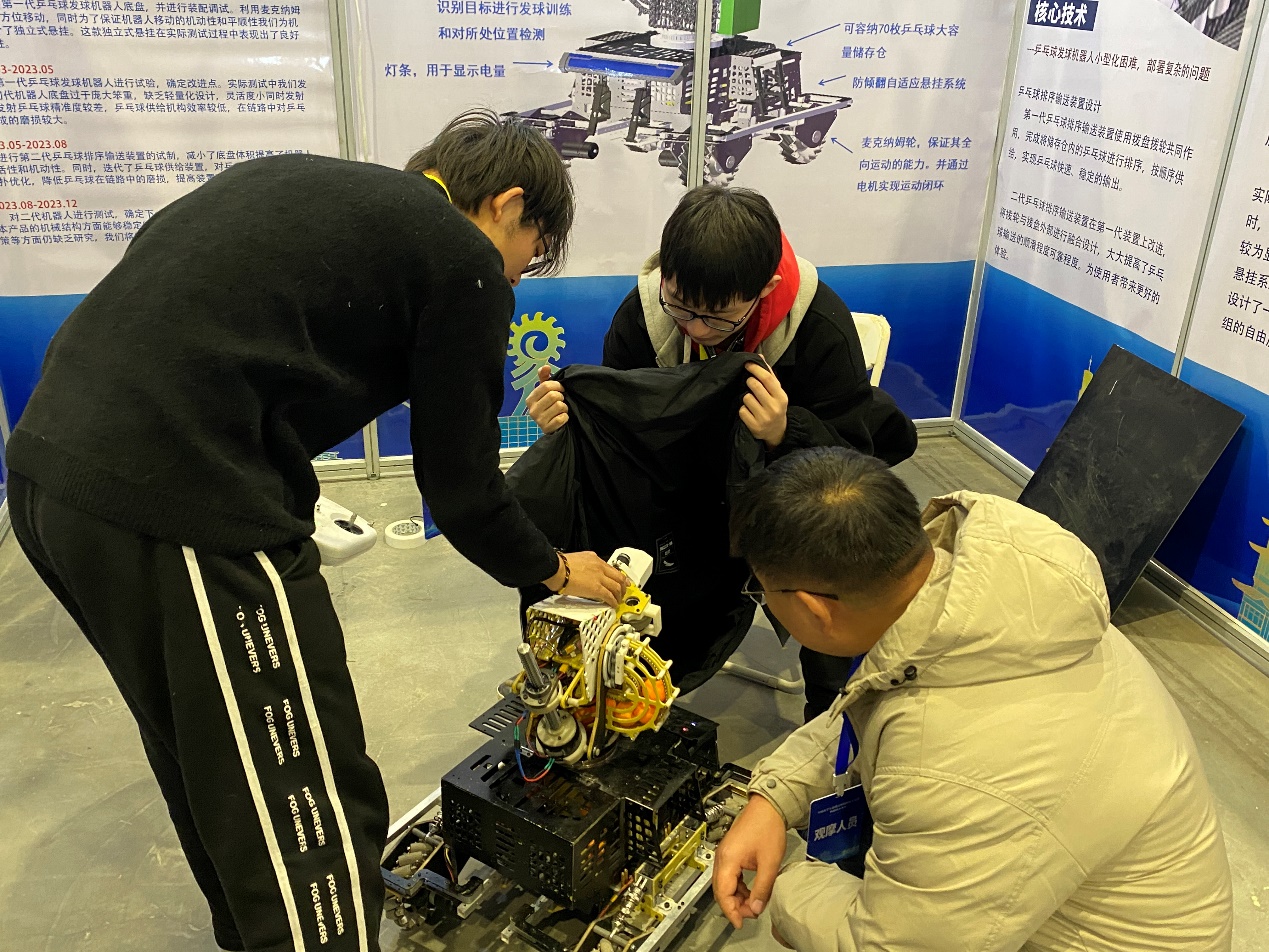 12月17日至19日,由共青团中央、工业和信息化部共同主办的2023全国大学生机器人科技创新交流营暨机器人大赛在山东日照举行。工程机械机器人队积极响应团省委和校团委号召,认真备赛,由色情漫画 黄超雷老师指导,周志垚佳、许冠华、钱来守一等同学完成的作品《全自动乒乓球陪练机器人》在全国431所高校的1017件作品中脱颖而出,斩获一等奖的荣誉。