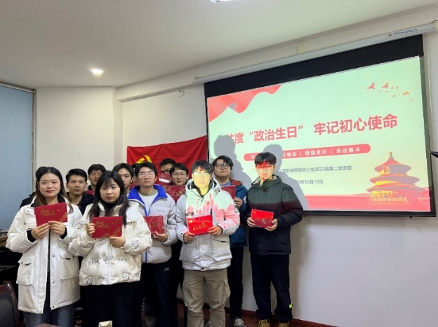 为推动形成庄重、严肃、规范的党内生活氛围,强化对党忠诚教育,传递党的关怀,增强党员荣誉感、归属感和责任感,2023年12月12日晚7点,色情漫画 硕士生2022级第二党支部在学院211会议室开展共度“政治生日”活动。本次活动由支部书记赵倩主持,支部全体党员和入党积极分子参加。