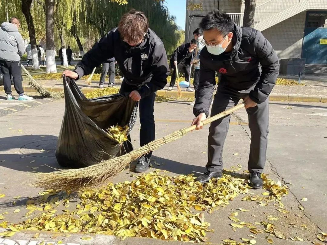 12月1日中午,学院本科生各党支部部分党员和第十六期青马班部分学员开展党团联动办实事志愿服务活动,针对近日天气转冷后落叶堆积较多的情况,同学们提前向学生社区借好了清扫用具,对渭水校区6号楼西侧道路落叶进行清扫,经过师生分组协作,大家迅速将落叶清扫完成。本次活动不但美化了校园环境,还培养提升了党团支部学生的爱校荣校意识和奉献精神。