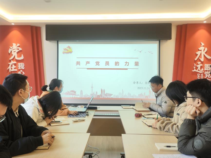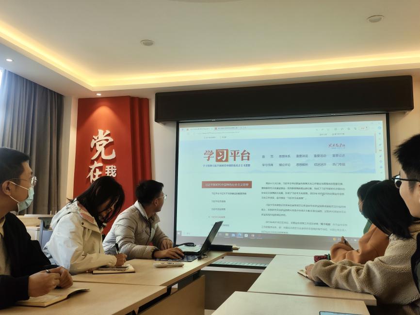 最后,在“学讲话、学精神、上讲台”环节,王晨光带领支部成员学习了习近平文化思想。文化关乎国本、国运,文化兴则国家兴,文化强则民族强,2023年10月,全国宣传思想文化工作会议首次提出了习近平文化思想。习近平总书记指出,宣传思想文化工作事关党的前途命运,事关国家长治久安,事关民族凝聚力和向心力,是一项极端重要的工作。在对宣传思想文化工作作出的重要指示中,习近平总书记提出了“七个着力”的要求:着力加强党对宣传思想文化工作的领导,着力建设具有强大凝聚力和引领力的社会主义意识形态,着力培育和践行社会主义核心价值观,着力提升新闻舆论传播力引导力影响力公信力,着力赓续中华文脉、推动中华优秀传统文化创造性转化和创新性发展,着力推动文化事业和文化产业繁荣发展,着力加强国际传播能力建设、促进文明交流互鉴。