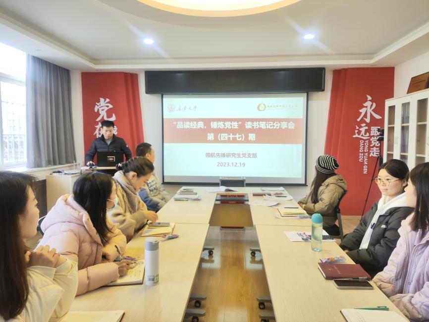 为进一步巩固学习贯彻习近平新时代中国特色社会主义思想主题教育学习成果,提高党员的思想觉悟和理论水平,增强支部的凝聚力。2023年12月19日,色情漫画 领航先锋研究生党支部组织支部成员在学院221党员活动室开展了第四十七期“品读经典,锤炼党性”读书分享活动,本次活动对照支部主题教育学习安排,由支部成员孔玉洁领学。