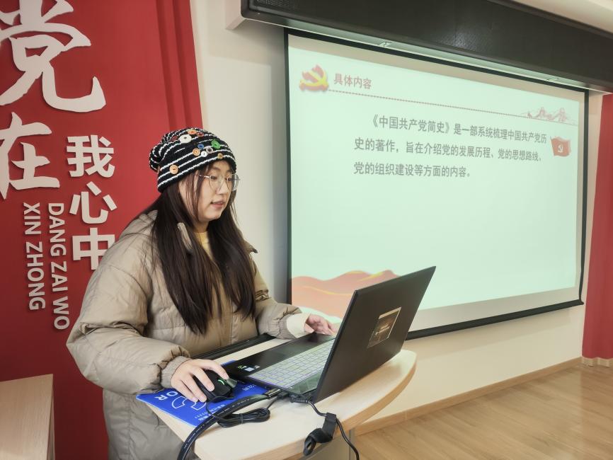 孔玉洁领学了《中国共产党简史》一书。《中国共产党简史》是一部系统梳理中国共产党历史的著作,旨在介绍党的发展历程、党的思想路线、党的组织建设等方面的内容,通过夹叙夹议的方式,书籍阐明了中国共产党为什么“能”、马克思主义为什么“行”、中国特色社会主义为什么“好”的道理,是一部思想深刻、通俗易懂的学习读本。孔玉洁表示,党的历史是一部中国社会发展史的缩影,深刻反映了中国走向独立富强的历史进程,学史明理、学史增信、学史崇德、学史力行,通过阅读《中国共产党简史》,她更加坚定了对马克思主义的信仰,增强了对实现中华民族伟大复兴中国梦的信心,也增强了对党中央的信赖。