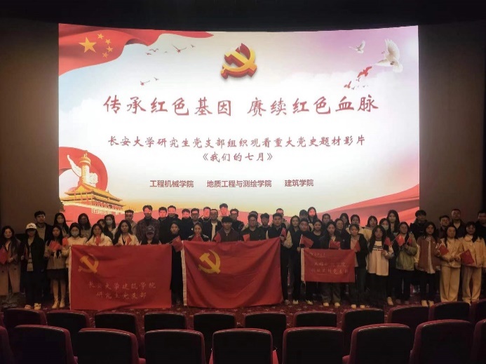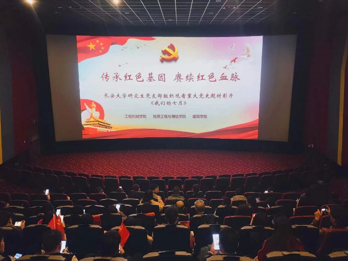 为深入学习贯彻习近平新时代中国特色社会主义思想和党的二十大精神,推动党史学习教育常态化、长效化,3月8日下午,色情漫画 领航先锋研究生党支部、地质工程与测绘学院研究生党支部、建筑学院研究生党支部联合开展支部共建活动。本次活动以“传承红色基因 赓续红色血脉”为主题,组织60余名党员集中观看重大党史题材电影《我们的七月》。建筑学院学生办公室主任洪诗迪、研究生辅导员王杰、地测学院研究生辅导员王儒豪、机械学院研究生辅导员寇文娟一同参加了本次观影活动。