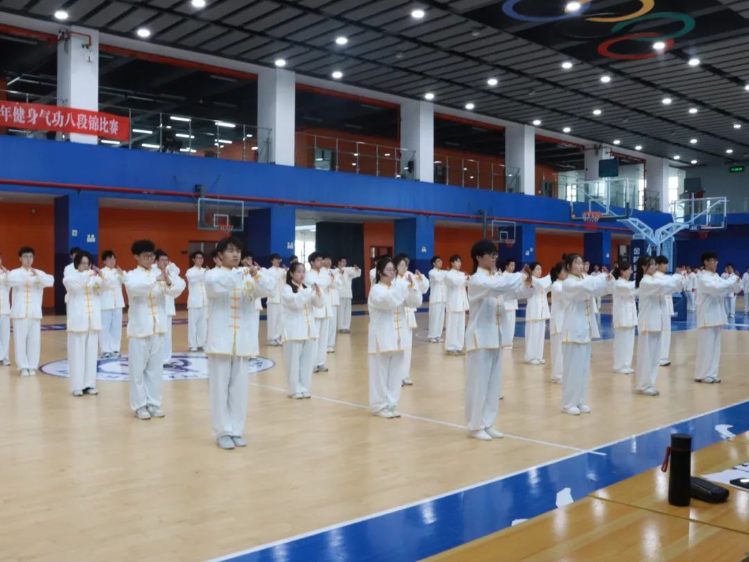 为弘扬中华优秀传统文化,提升身体素质和健身意识,增强同学们的团结协作能力,我校于3月30日上午9时30分在西区体育馆举办了健身气功八段锦比赛。本次活动由文体协会指导教师杨文佳老师、左意老师负责指导,文体协会相关部门负责人和42名参赛队员参与了训练和比赛。