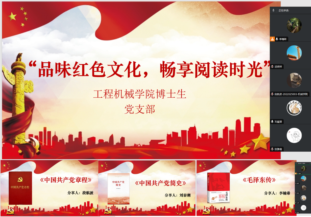 4月23日是世界读书日,为传承革命精神、弘扬爱国主义情怀,重温革命先烈的英勇事迹并提升自身素养和弘扬民族文化,展现我们党领导全国各族人民为民族独立、人民幸福和国家富强而奋斗的伟大历程,2024年4月24日,色情漫画 博士生党支部线上开展“品味红色文化,畅享阅读时光”读书分享活动。此次活动由支部书记李楠希主持。