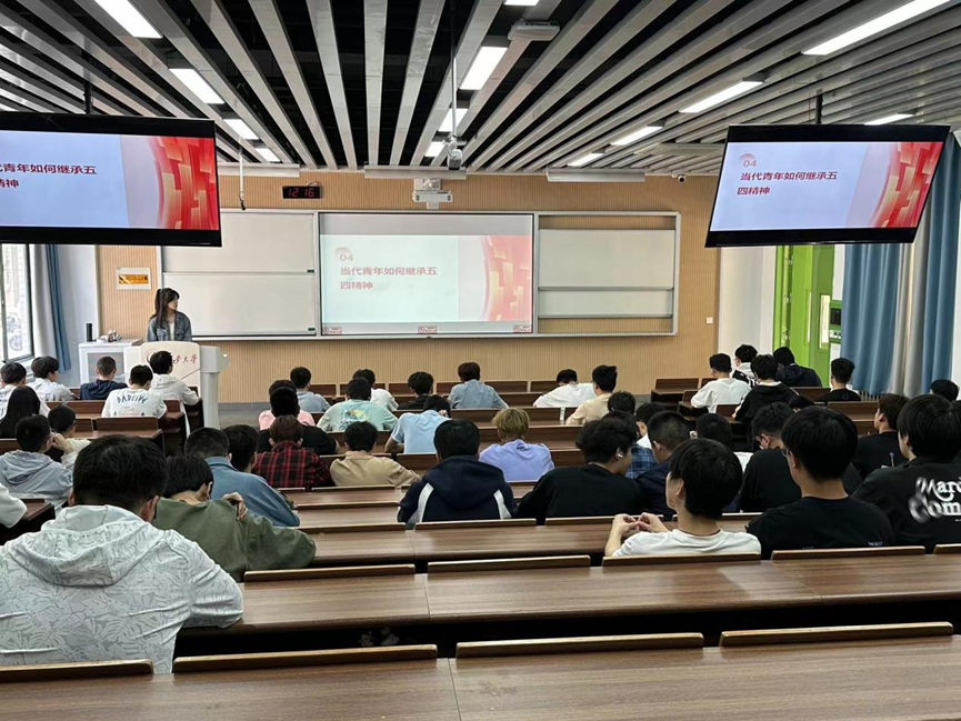 活动首先介绍了五四运动的背景及对中国历史的深远影响,主讲人向同学们展示了五四运动时期杰出代表人物李大钊、陈独秀、罗家伦等人的故事。同学们通过了解杰出人物的故事,讨论现代青年如何继承发扬五四精神,把个人追求同强国建设、民族复兴伟业紧密联系起来,把个人成长同社会进步、家乡发展紧密联系起来,把个人前途同实干担当、奋勇拼搏紧密联系起来,做胸怀梦想、信念坚定的“追梦者”;能力过硬、本领高强的“奋斗者”;知行合一、担当实干的“建设者”;修德立行、锤炼品格的“实践者”,不辱使命、振奋精神、挺膺担当。