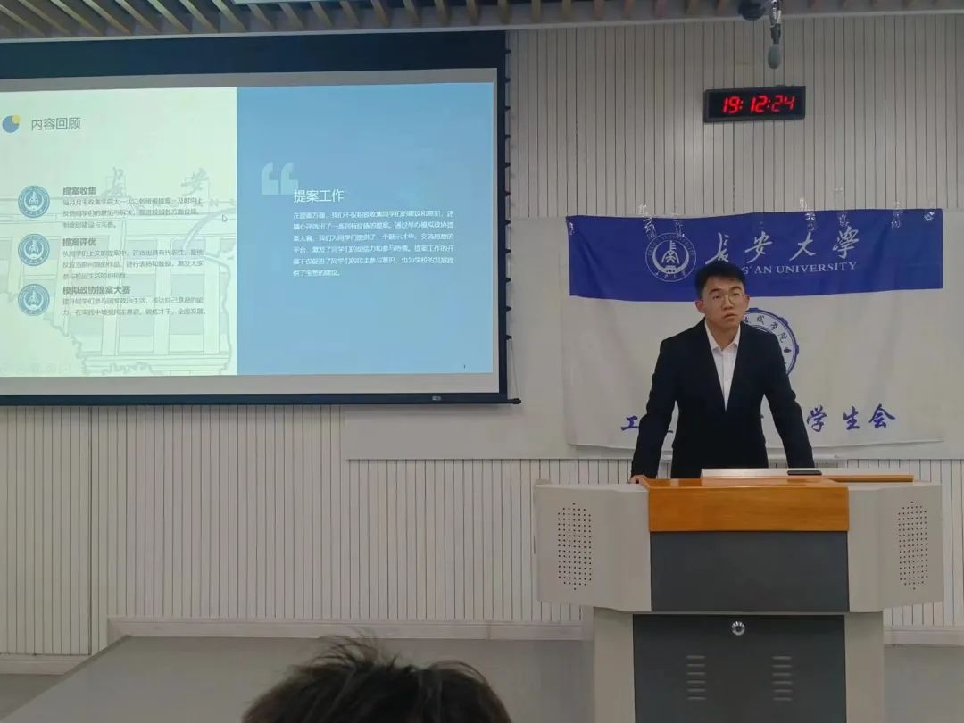 随后,组织部负责人李家宇作工作报告。在学生会学习红色精神活动中,组织部周密安排,组织同学们前往西安八路军办事处体会红色文化。在运动会期间,组织部多方协调,兼顾从后勤到运动员比赛多方面,为校运会成功举办做出巨大推动作用。
