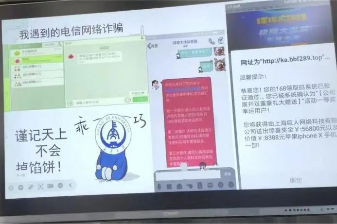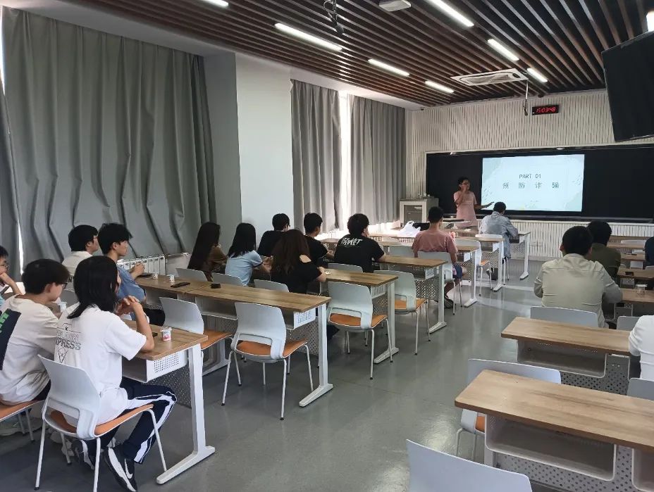 首先,袁帅韬根据现实生活中真实发生的电信诈骗案例,向大家介绍了几种电信诈骗的常用手段,并总结了判断和预防电信网络诈骗的方法,提醒同学们天上不会掉馅饼,遇到疑似诈骗事件要主动联系老师,必要时及时报警。