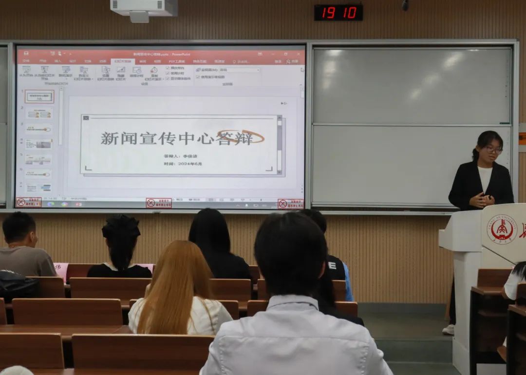 6月13号晚上七点,色情漫画 新闻宣传中心换届答辩暨主席团述职报告会在WX2105教室顺利召开。新闻宣传中心指导教师吴德林、王风珊,以及新闻宣传中心主席团成员,各部门负责人和答辩候选人参加本次答辩会,会议由新闻宣传中心主任师佳瑶主持。